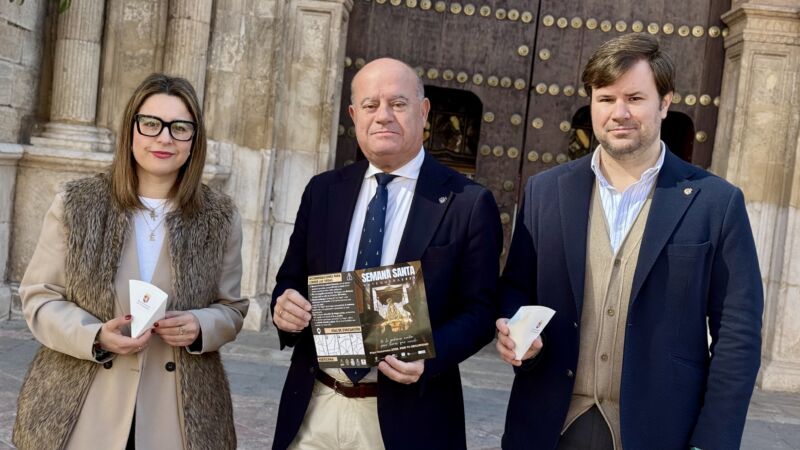 El alcalde Manolo Barón, el responsable de Seguridad, Antonio García, y Elena Melero, responsable de Tradiciones, informan sobre la puesta en marcha del Plan Nazareno 2026, el instrumento operativo que regula la organización y seguridad durante la celebración de la Semana Santa.